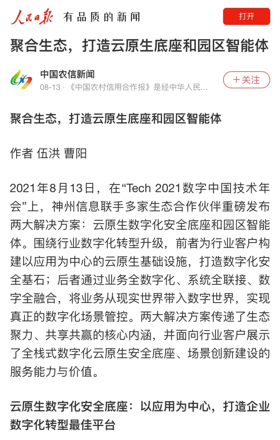 “数字中国 2021技术年会”云上举行 神州控股等联合发布 “神州信创云”